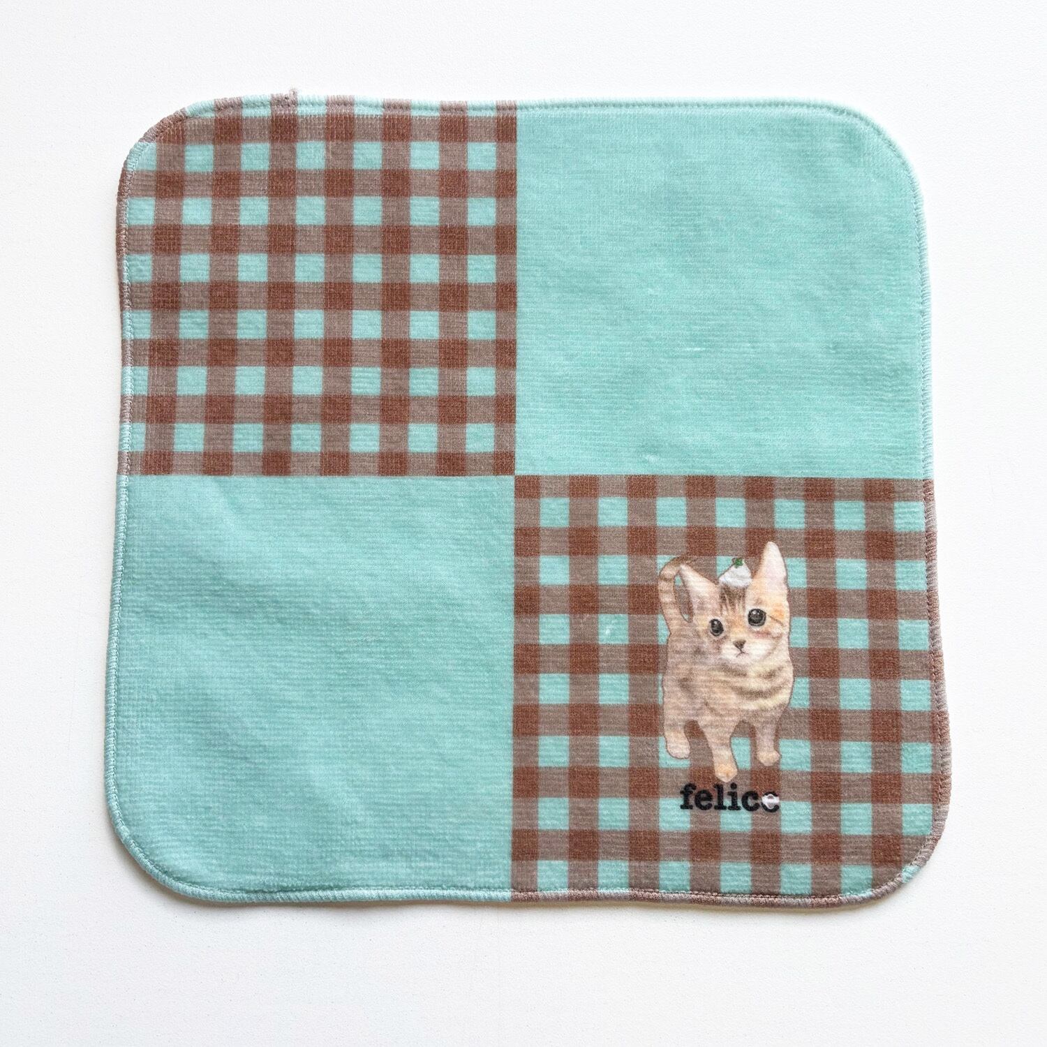 チョコミントをイメージした水彩画猫のタオルハンカチです。