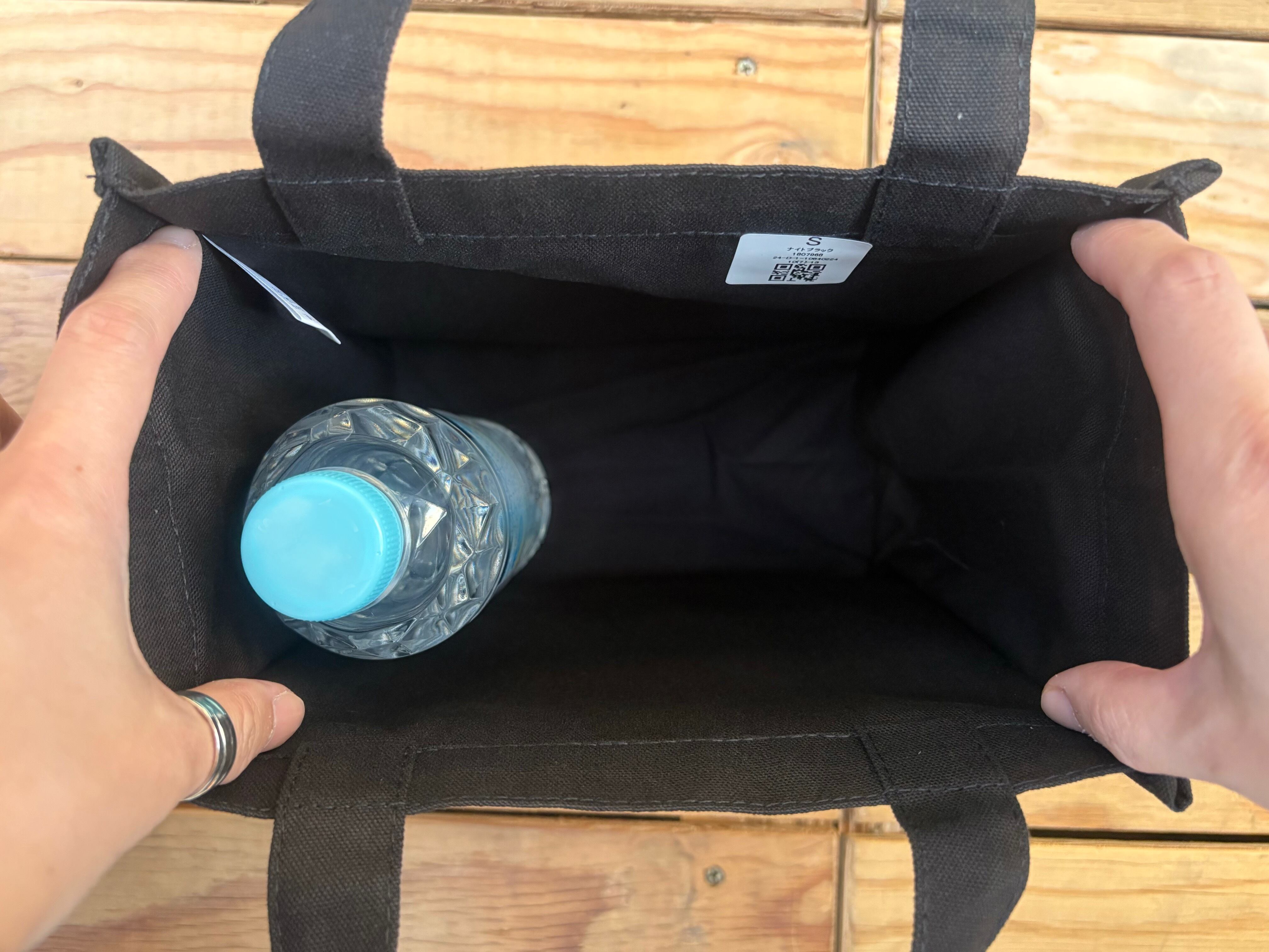 約12cmと広めの底マチ付きで、お弁当箱や水筒、さらにお財布やタオルなどのアイテムもすっぽり入ります。