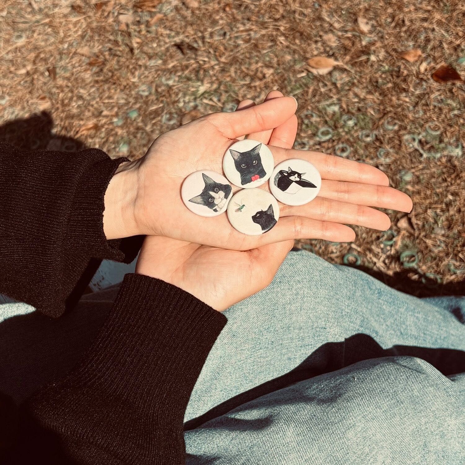 缶バッヂ ずっと一緒/felice 水彩画 猫(ねこ ネコ)