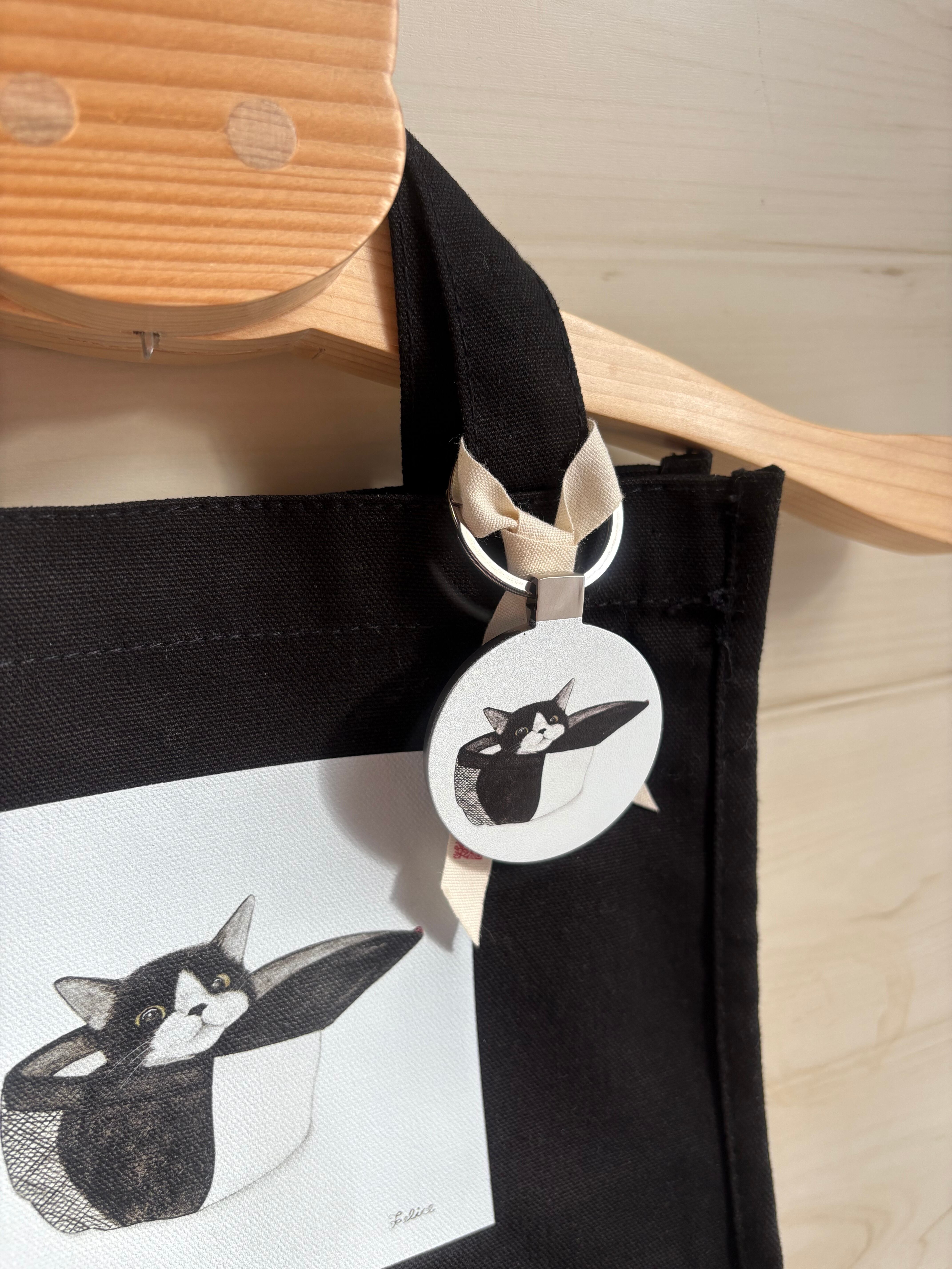 ミラーキーホルダー 幸運を乗せて/ felice 猫 バッグ(ねこ ネコ)